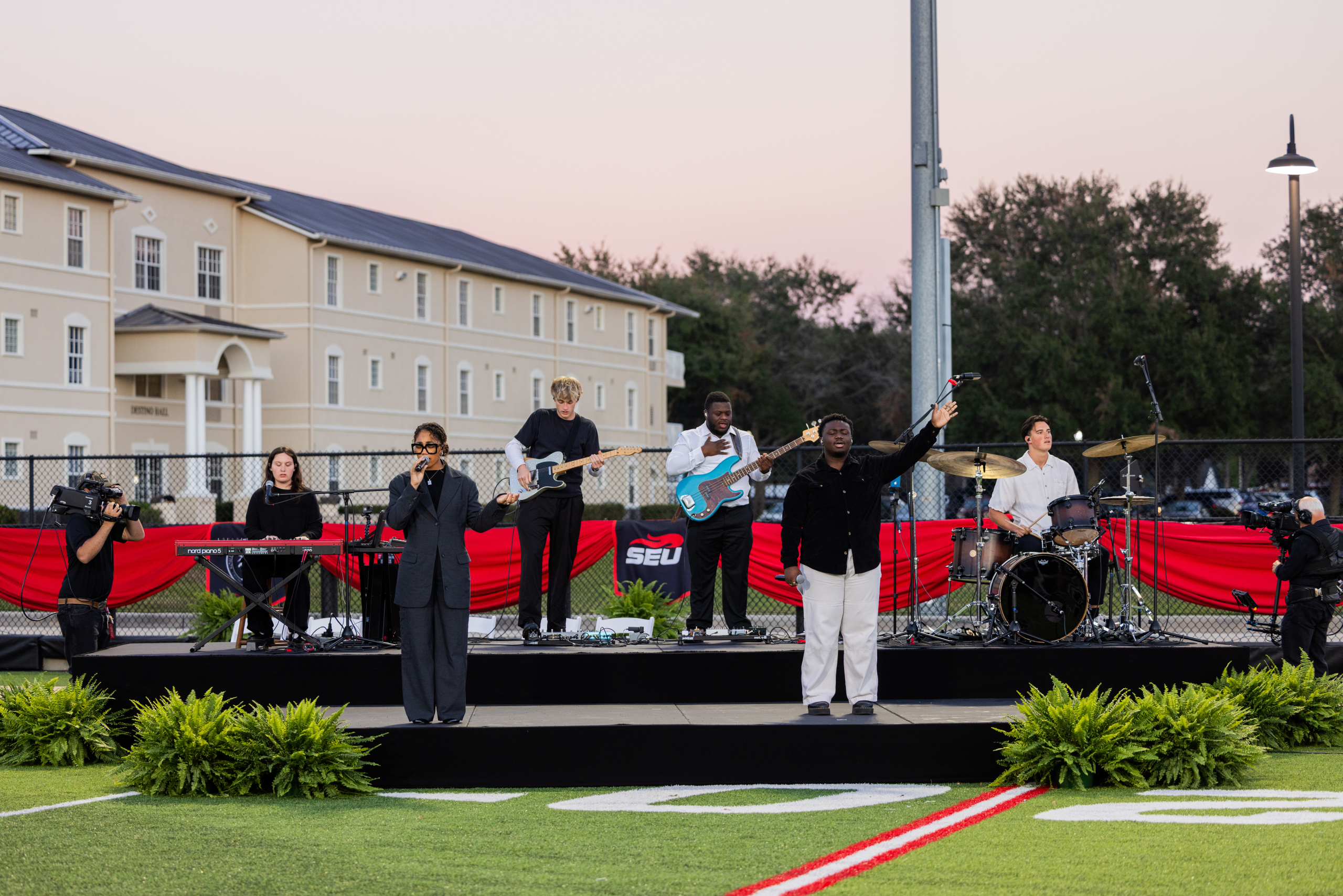 MABE provided full audio, video, and rigging production services for Southeastern University’s 2025 Fall Commencement at Victory Field in Lakeland, Florida. This large-scale outdoor ceremony required a coordinated approach and professional commencement production services to support both in-person attendees and remote viewers.